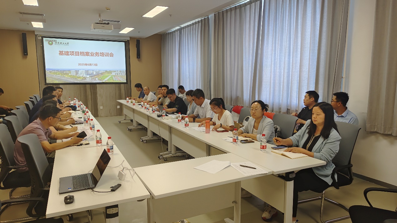 2025年6月13日下午,在良乡校区文萃楼A405会议室召开基建项目档案业务培训会,北京市规划和自然资源委员会房山分局综合管理事务中心田娟主管、学校后勤基建处副处长孙程,档案馆副馆长魏丽、二室主任岳鹏,及各基建项目组甲方代表和有关负责人参加会议。